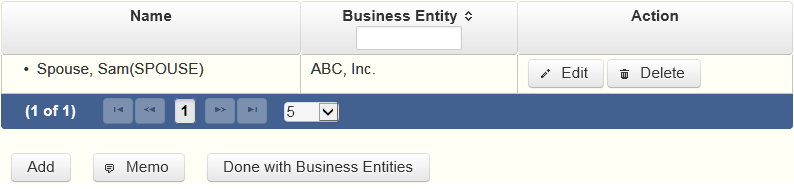 The business entities list will be the first screen you see each time you return to this part. From this list, you will be able to