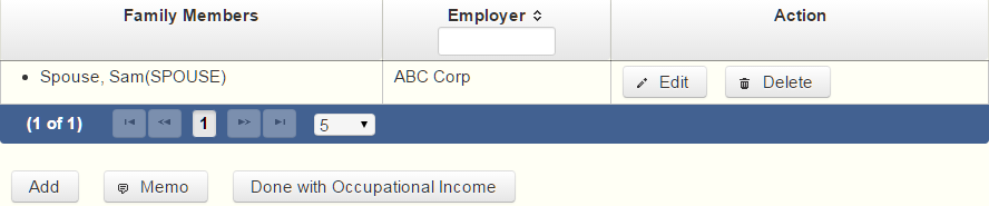The sources of occupational income list will be the first screen you see each time you return to this part. From this list, you will be able to